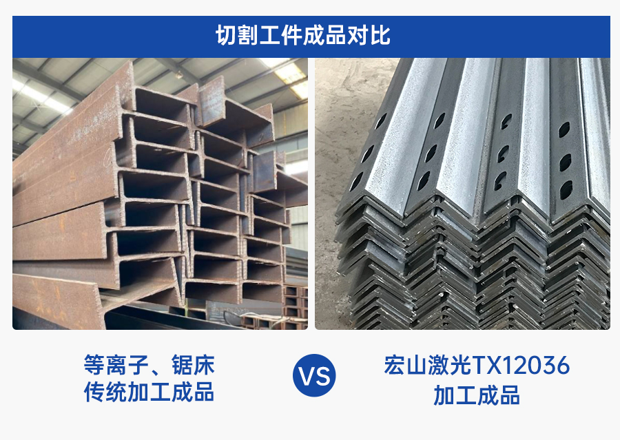“沒買這個設備(TX12036)之前我們一直用平臺等離子+鋸床切割,效果差,效率慢,一個項目下來最少要割個七八天。特別是切割工型鋼的鎖扣,這個是大梁組裝焊接的位置,這個位置要求比較高,焊接難度比較大,等離子+鋸床切割的效果一般,品質控制難度大,宏山激光的這臺設備解決了我們的難處,效率提高的同時,品質也得到了較大的提升。”