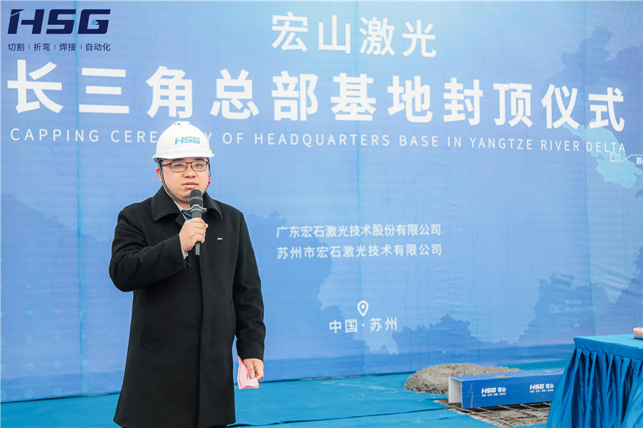 在聽取基地建設(shè)進(jìn)度匯報(bào)后,宏山激光董事俞宏標(biāo)先生為此次活動(dòng)發(fā)表致辭,俞總對(duì)多方施工單位表達(dá)了感謝,并表示:長(zhǎng)三角總部基地的建設(shè),是宏山激光國(guó)內(nèi)乃至全球布局發(fā)展的重要一環(huán),是宏山激光增資擴(kuò)產(chǎn)、擴(kuò)大企業(yè)實(shí)力、完善戰(zhàn)略布局的重要步驟。未來(lái),長(zhǎng)三角總部基地將扎根蘇州,面向華東、華北地區(qū),為用戶提供“家門口”的激光智能裝備服務(wù)。